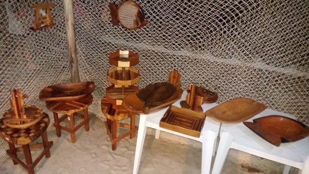 Num canto da casa, havia as belas obras do artesão caiçara José