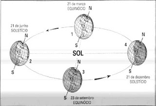 ocasionando o início das 4 estações do ano para nós do hemisfério sul, como mostra a ilustração acima