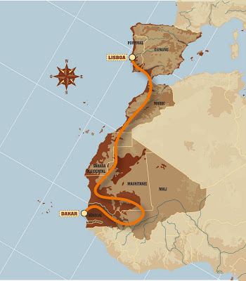 Logo que cruzava o Estreito de Gibraltar e entrava na África, o percurso seguia para o oeste a fim de evitar o território da Argélia, mas a passagem pela Mauritânia representava perigo iminente para os competidores