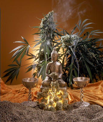 Não só no Hinduísmo a maconha recebe destaque religioso. Para a tradição Mahayana do Budismo (das mais místicas e meditativas), Buda teria passado 6 anos se alimentando apenas com uma semente de cannabis por dia. Outras tradições do Budismo substituem a semente de maconha por um grão de arroz na história.