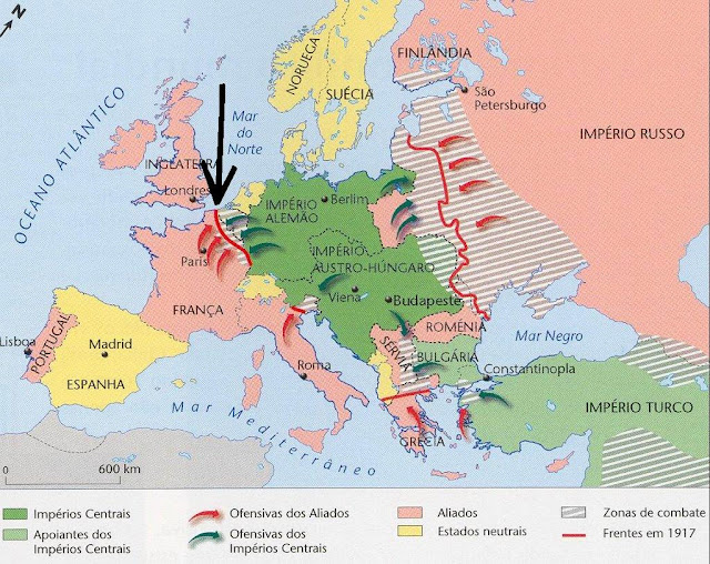 Do outro lado, a Sérvia foi apoiada pela França, Inglaterra e Rússia (A chamada Tríplice Entende). Pronto, tinha assim início a Primeira Guerra Mundial.